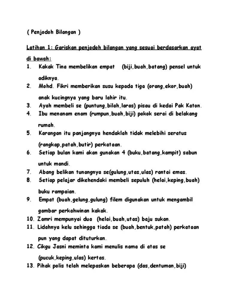 Latihan Tatabahasa Penjodoh Bilangan Tahun 2 / 64 Soalan Latih Tubi Penjodoh Bilangan Berserta Jawapan
